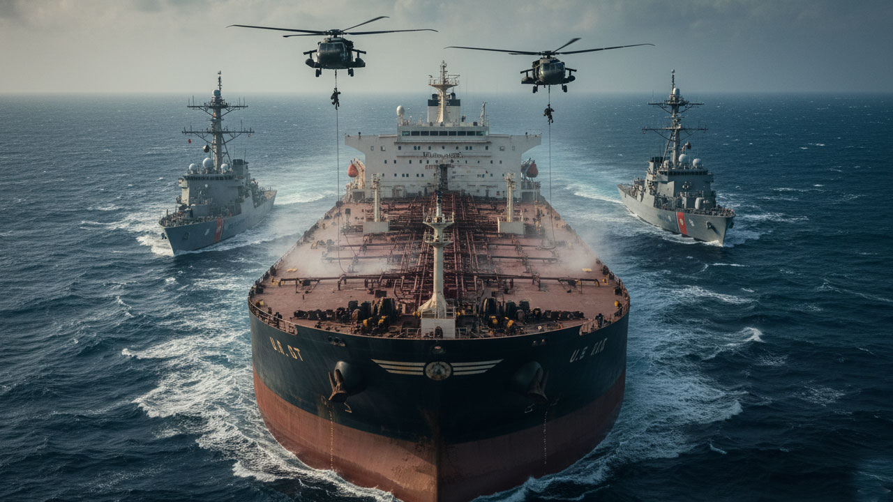 Footage released by U.S. authorities shows helicopters hovering above the tanker as troops fast-roped onto the deck. Armed personnel then conducted searches of the vessel, moving methodically across the ship in coordination with the Department of Defense, the FBI, Homeland Security Investigations, and the U.S. Coast Guard.