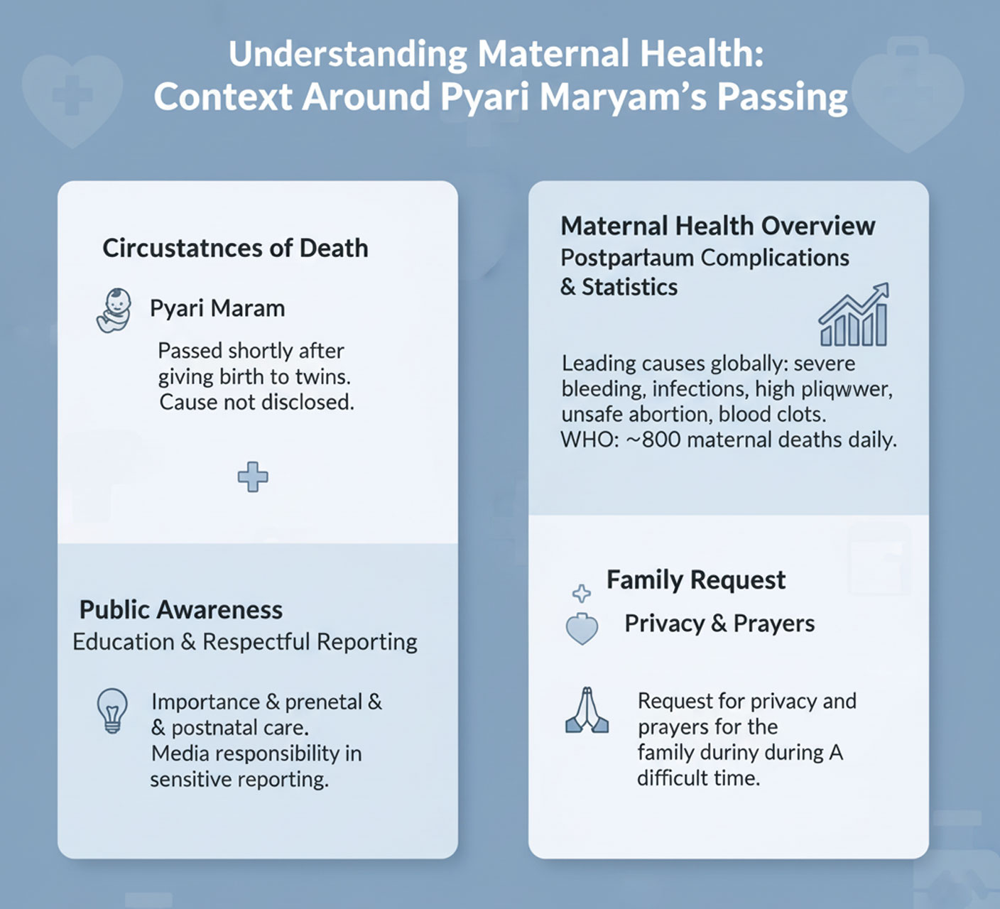 - Maternal Health Context: While maternal deaths are globally significant, no verified reports link Maryam’s case to broader trends.